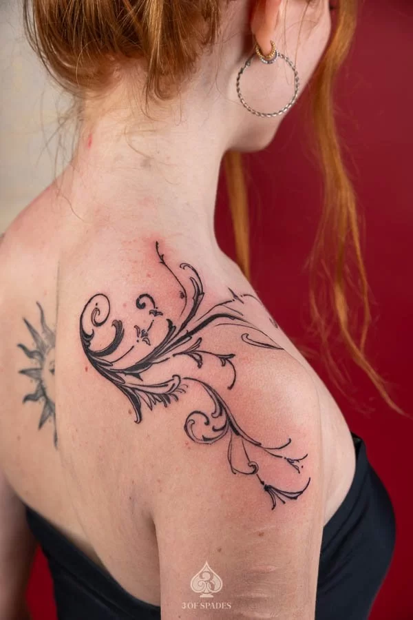 A Abstract Shoulder Fence tattoo carries deep personal significance for many who choose it. The specific meaning can vary based on the design elements, style, and personal intention of the wearer. Our artists at 3 Of Spades Tattoo Hanoi can help you incorporate meaningful details into your unique design.