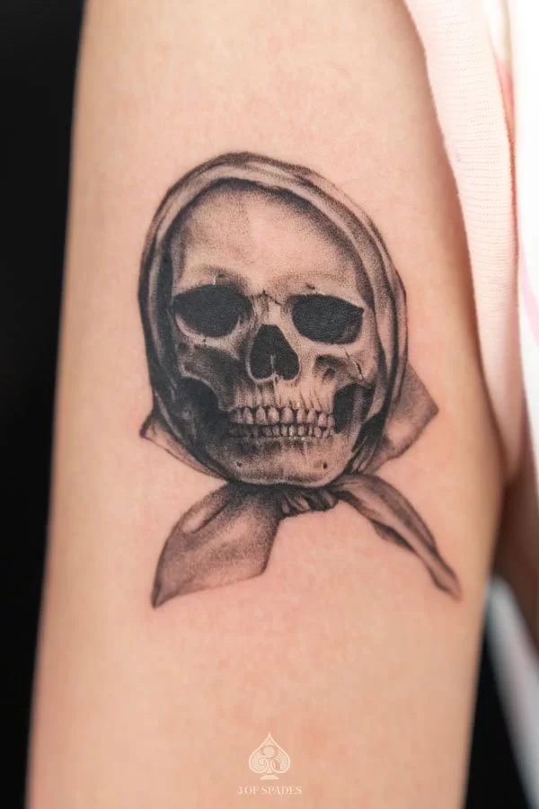 A Blackwork Skeleton tattoo represents a powerful connection between inner emotion and outward expression. The specific meaning can vary based on the design elements, style, and personal intention of the wearer. Our artists at 3 Of Spades Tattoo Hanoi can help you incorporate meaningful details into your unique design.
