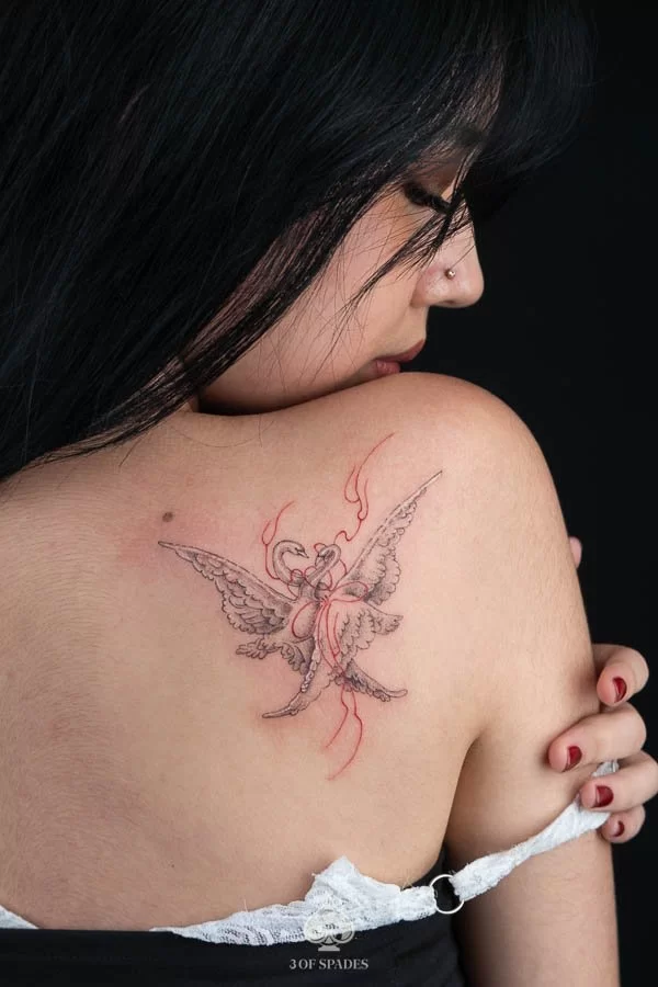 A Double Swan tattoo embodies a story that words alone cannot capture. The specific meaning can vary based on the design elements, style, and personal intention of the wearer. Our artists at 3 Of Spades Tattoo Hanoi can help you incorporate meaningful details into your unique design.