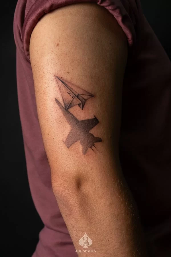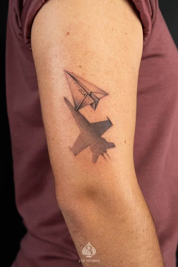 Most tattoos take 2 to 4 weeks for the surface to heal, with full skin recovery taking up to 3 months. We provide detailed aftercare instructions to ensure your Flying Plane Tattoo heals perfectly and retains its vibrancy.