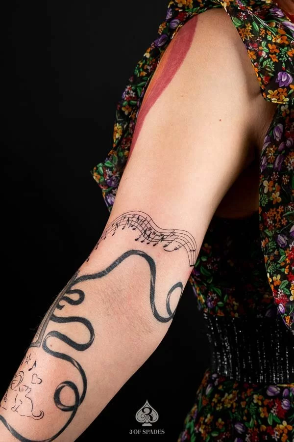 Most tattoos take 2 to 4 weeks for the surface to heal, with full skin recovery taking up to 3 months. We provide detailed aftercare instructions to ensure your Music Notes Tattoo heals perfectly and retains its vibrancy.