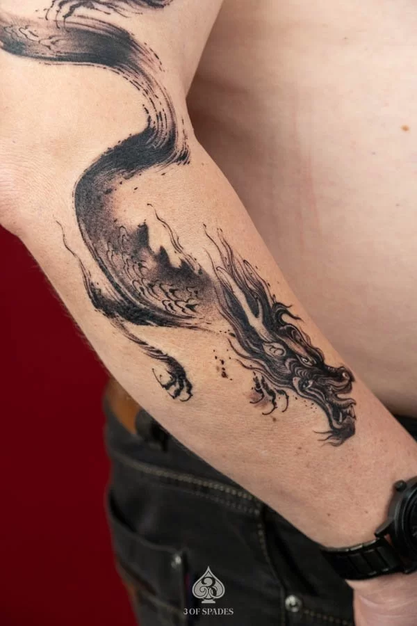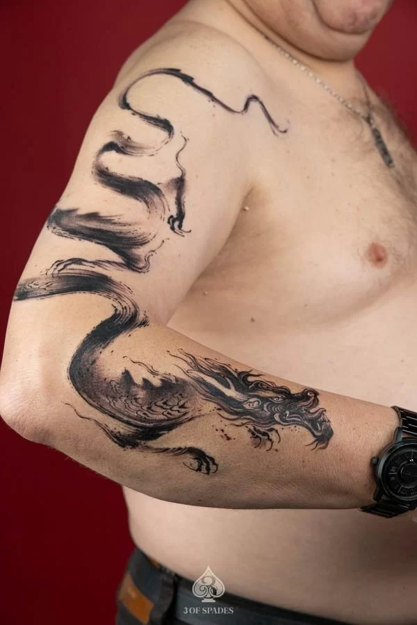 At 3 Of Spades Tattoo Hanoi, pricing for a Brushstroke Dragon Flow Full Arm Tattoo typically ranges from $56 to $437 or more, depending on several factors: