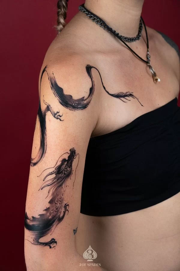Design Ideas for Your Dragon Brush Shoulder Hand Tattoo