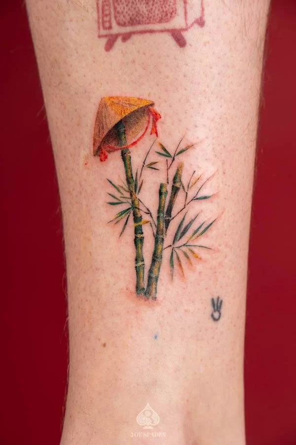 Your Conical Hat Bamboo In Colour Tattoo journey starts with a conversation. Whether you have a clear vision or just the beginning of an idea, our artists at 3 Of Spades Tattoo Hanoi are ready to collaborate with you. We believe that Body is my journal, tattoos are my stories, and we are here to help you write your next chapter.
