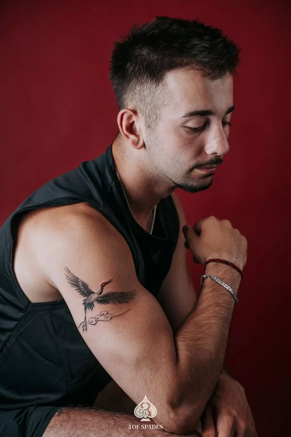 A Crane And Cloud tattoo holds cultural and spiritual meaning that transcends simple aesthetics. The specific meaning can vary based on the design elements, style, and personal intention of the wearer. Our artists at 3 Of Spades Tattoo Hanoi can help you incorporate meaningful details into your unique design.
