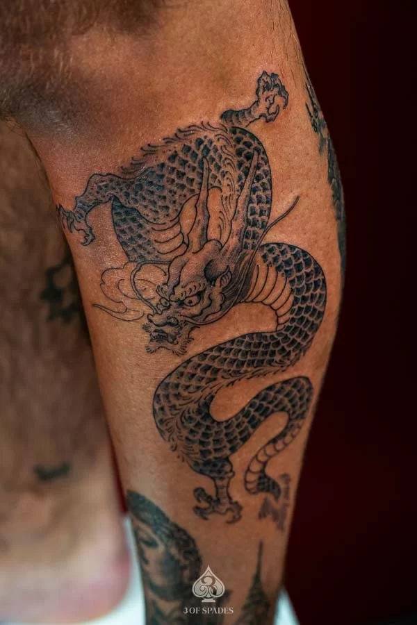 Your Dragon Tattoo Shin Tattoo journey starts with a conversation. Whether you have a clear vision or just the beginning of an idea, our artists at 3 Of Spades Tattoo Hanoi are ready to collaborate with you. We believe that Body is my journal, tattoos are my stories, and we are here to help you write your next chapter.