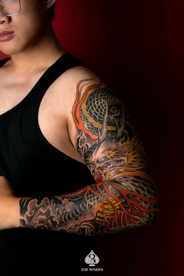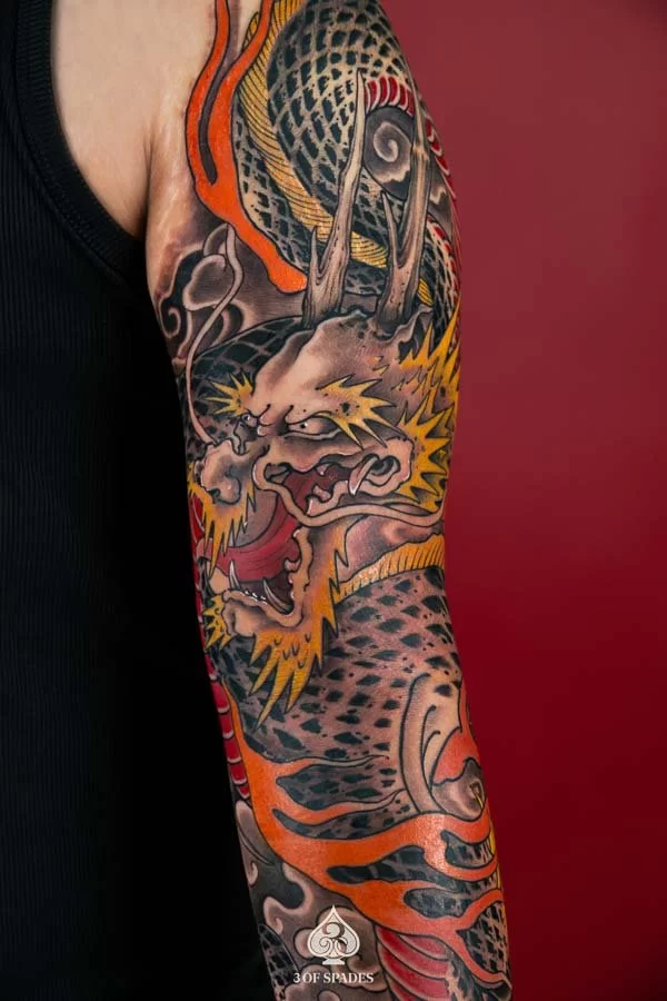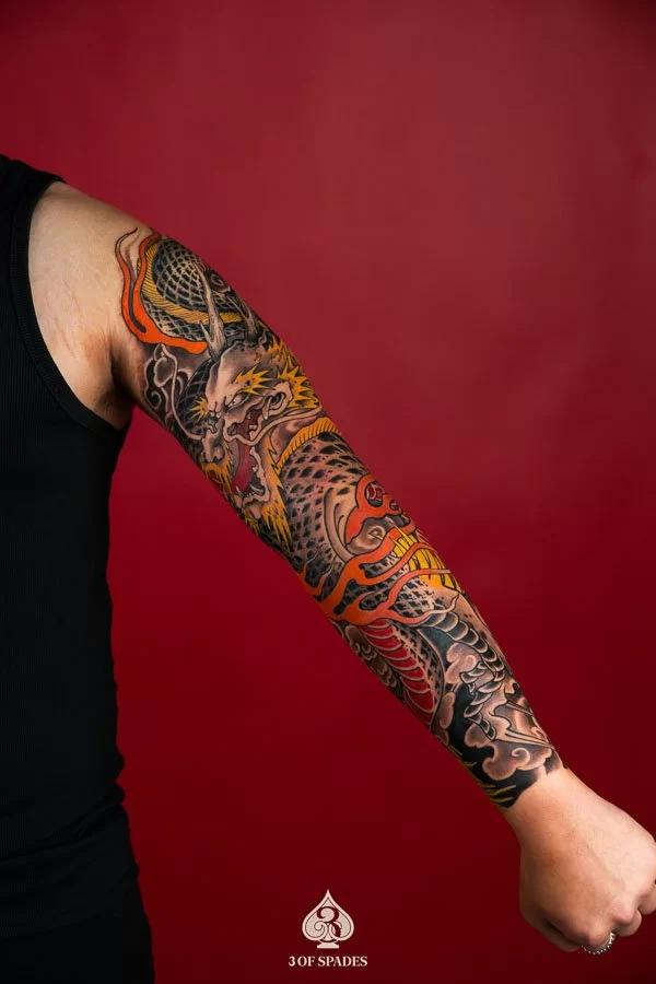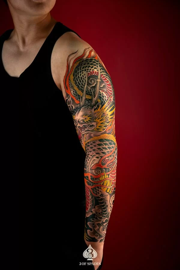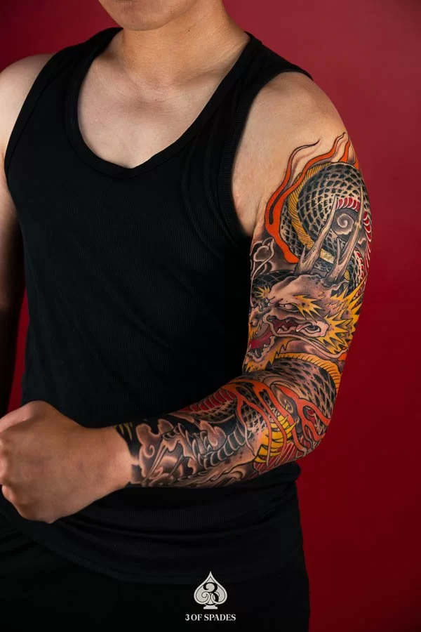 At 3 Of Spades Tattoo Hanoi, pricing for a Japanese Dragon Fullarm Tattoo Tattoo typically ranges from $72 to $318 or more, depending on several factors: