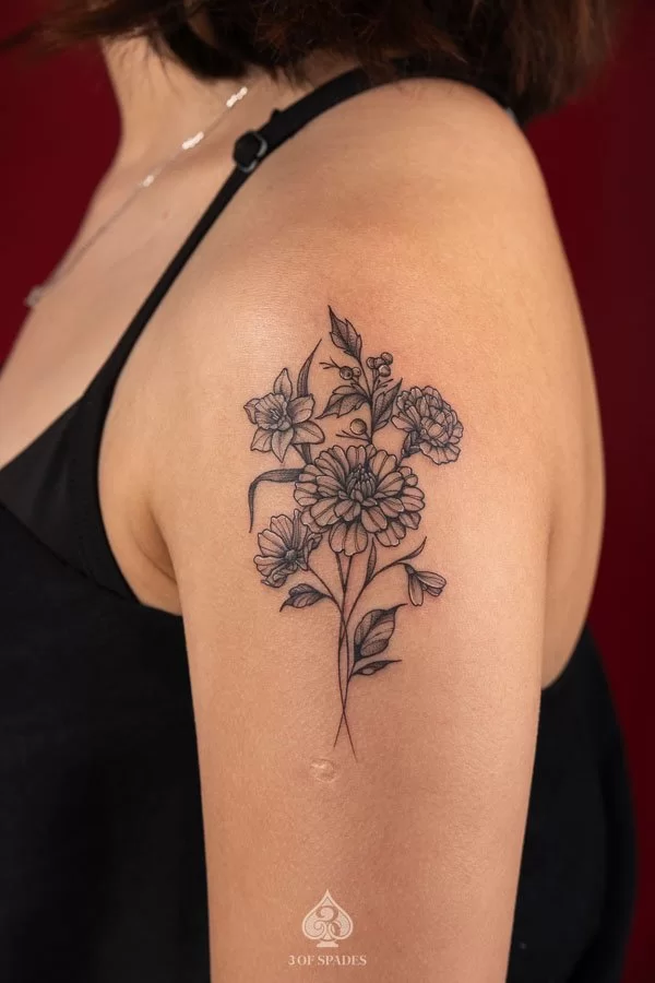 The Flower Bouquet Tattoo design represents a powerful connection between inner emotion and outward expression. In the world of tattoo art, Flower Bouquet Tattoo imagery draws from a rich visual language that resonates across cultures and personal experiences. Many of our clients at 3 Of Spades Tattoo Hanoi choose this design because it reflects something deeply personal, whether it is a milestone, a memory, or a belief they carry with them every day.