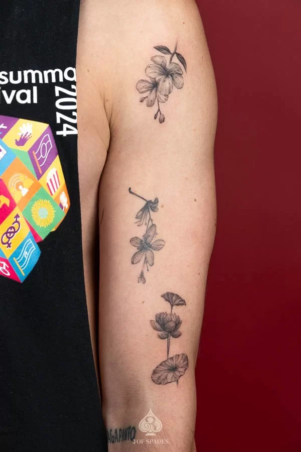 Your Mini Flower And Plant Tattoo journey starts with a conversation. Whether you have a clear vision or just the beginning of an idea, our artists at 3 Of Spades Tattoo Hanoi are ready to collaborate with you. We believe that Body is my journal, tattoos are my stories, and we are here to help you write your next chapter.