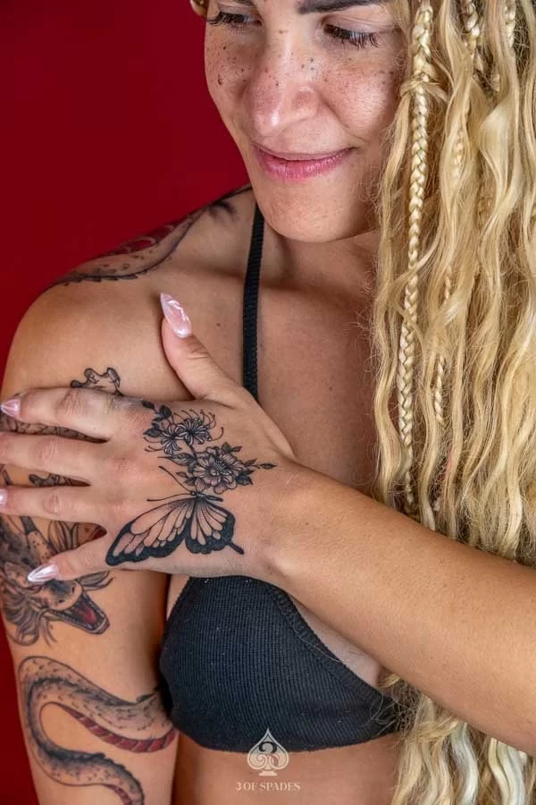 A Butterfly Hand Tatoo tattoo represents a powerful connection between inner emotion and outward expression. The specific meaning can vary based on the design elements, style, and personal intention of the wearer. Our artists at 3 Of Spades Tattoo Hanoi can help you incorporate meaningful details into your unique design.