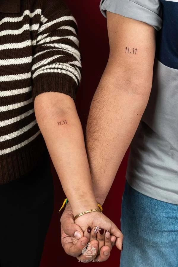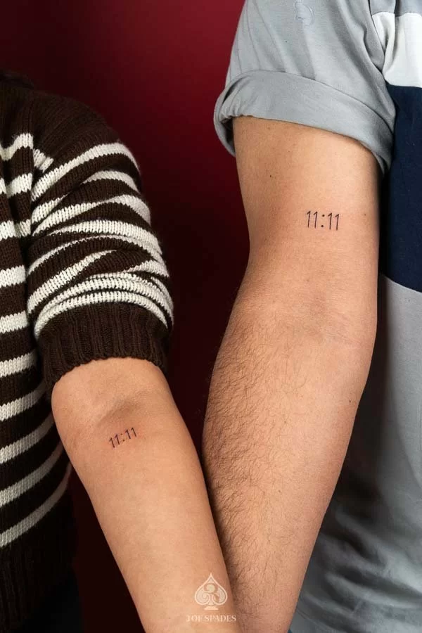 Most tattoos take 2 to 4 weeks for the surface to heal, with full skin recovery taking up to 3 months. We provide detailed aftercare instructions to ensure your Matched 1111 Tattoo heals perfectly and retains its vibrancy.