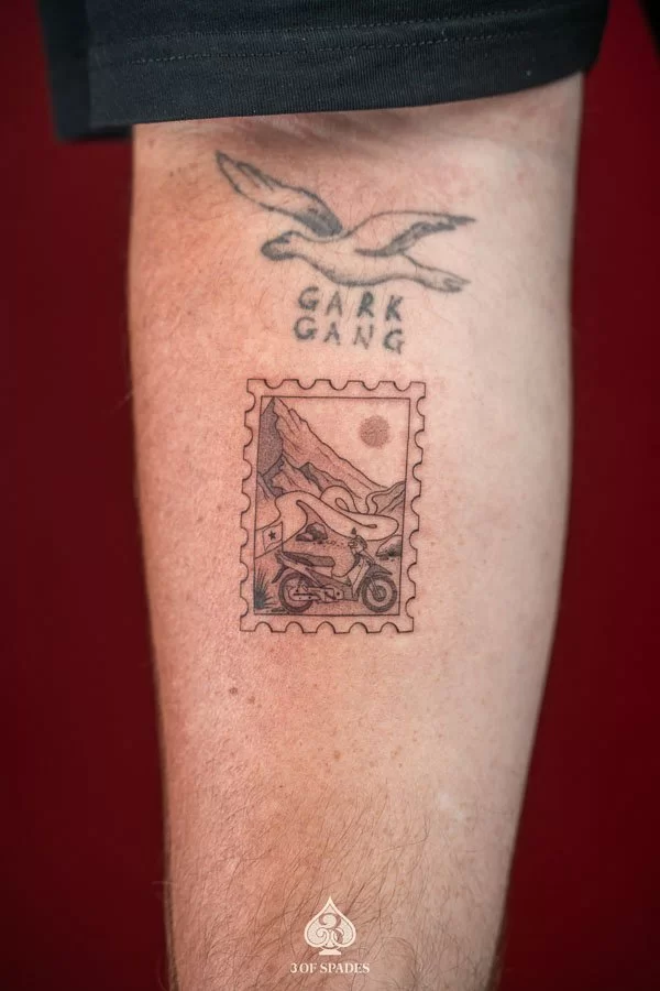 Combining different artistic influences, this approach to the Matched Hagiang Stamps Tattoo creates something truly one-of-a-kind. It bridges traditional tattoo aesthetics with contemporary design sensibilities for a result that feels fresh and timeless.