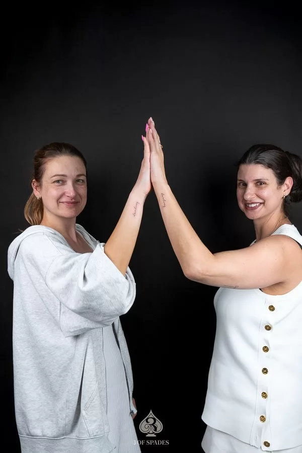 Most tattoos take 2 to 4 weeks for the surface to heal, with full skin recovery taking up to 3 months. We provide detailed aftercare instructions to ensure your Matched Lettering Tattoo heals perfectly and retains its vibrancy.
