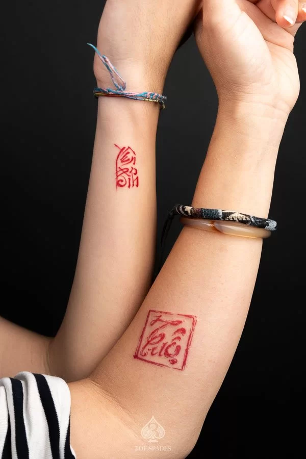 The Matched Seal For Mom And Daughter Tattoo is one of those designs that speaks before you do. At 3 Of Spades Tattoo Hanoi, we have had the privilege of bringing countless Matched Seal For Mom And Daughter designs to life for clients from around the world. Whether you discovered this design while traveling through Hanoi or have been dreaming about it for years, a Matched Seal For Mom And Daughter Tattoo at our studio is more than ink on skin. It is a statement, a memory, a piece of who you are. As we say: Body is my journal, tattoos are my stories.