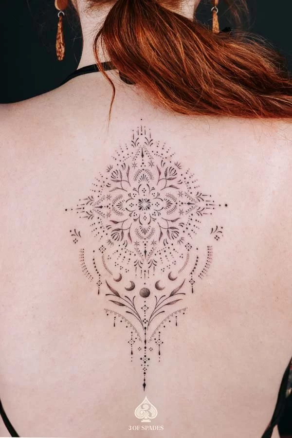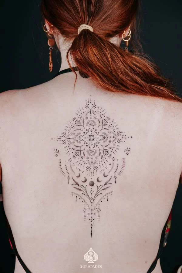 A Ornament Back Tattoo tattoo embodies a story that words alone cannot capture. The specific meaning can vary based on the design elements, style, and personal intention of the wearer. Our artists at 3 Of Spades Tattoo Hanoi can help you incorporate meaningful details into your unique design.