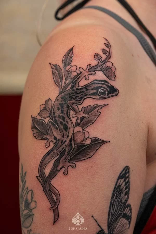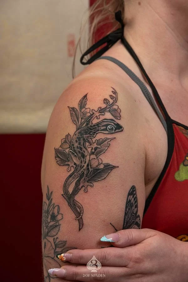 A Gecko And Plant tattoo holds cultural and spiritual meaning that transcends simple aesthetics. The specific meaning can vary based on the design elements, style, and personal intention of the wearer. Our artists at 3 Of Spades Tattoo Hanoi can help you incorporate meaningful details into your unique design.