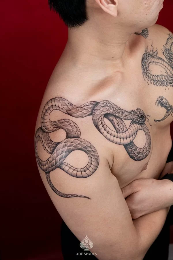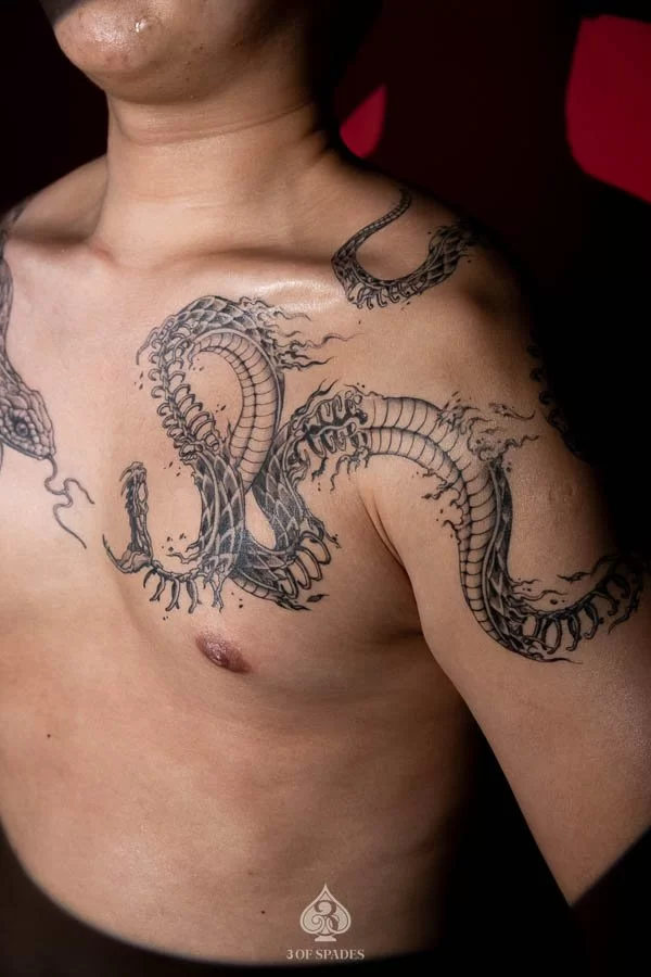 Your Snake And Skeleton Snake Tattoo journey starts with a conversation. Whether you have a clear vision or just the beginning of an idea, our artists at 3 Of Spades Tattoo Hanoi are ready to collaborate with you. We believe that Body is my journal, tattoos are my stories, and we are here to help you write your next chapter.