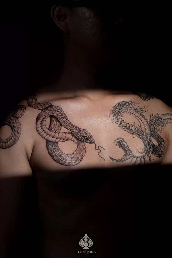 The Snake And Skeleton Snake Tattoo is one of those designs that speaks before you do. At 3 Of Spades Tattoo Hanoi, we have had the privilege of bringing countless Snake And Skeleton Snake designs to life for clients from around the world. Whether you discovered this design while traveling through Hanoi or have been dreaming about it for years, a Snake And Skeleton Snake Tattoo at our studio is more than ink on skin. It is a statement, a memory, a piece of who you are. As we say: Body is my journal, tattoos are my stories.