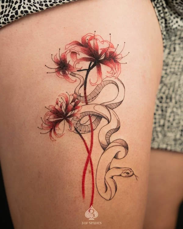 The Snake Spider Lilly Tattoo Tattoo is one of those designs that speaks before you do. At 3 Of Spades Tattoo Hanoi, we have had the privilege of bringing countless Snake Spider Lilly Tattoo designs to life for clients from around the world. Whether you discovered this design while traveling through Hanoi or have been dreaming about it for years, a Snake Spider Lilly Tattoo Tattoo at our studio is more than ink on skin. It is a statement, a memory, a piece of who you are. As we say: Body is my journal, tattoos are my stories.