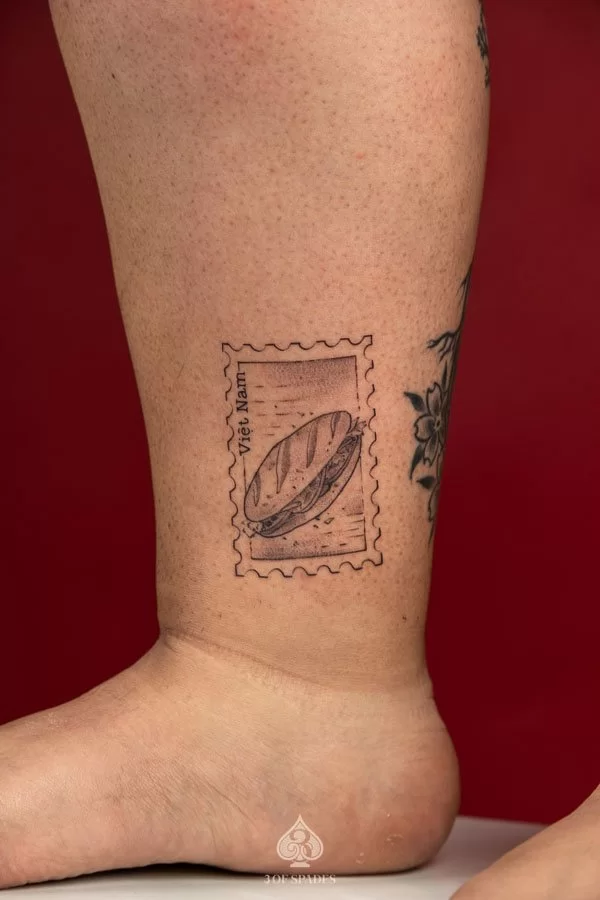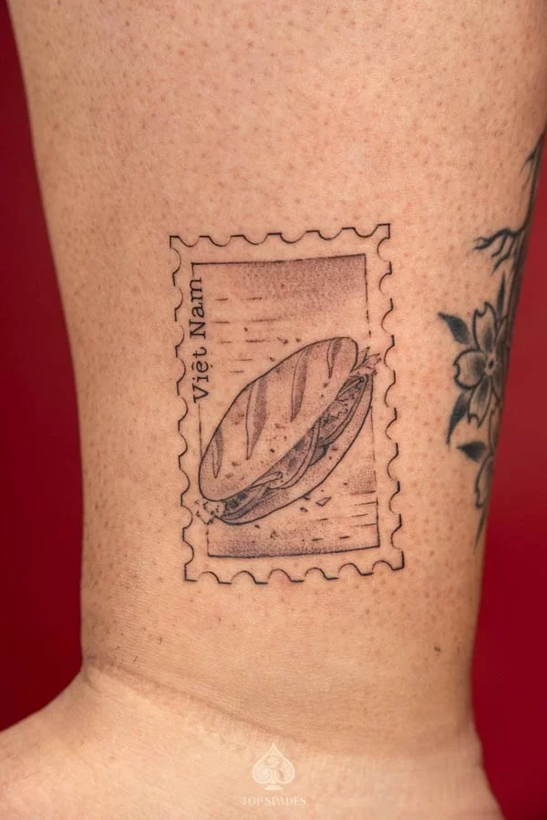 Your Banhmy Stamps Inspired Tattoo journey starts with a conversation. Whether you have a clear vision or just the beginning of an idea, our artists at 3 Of Spades Tattoo Hanoi are ready to collaborate with you. We believe that Body is my journal, tattoos are my stories, and we are here to help you write your next chapter.