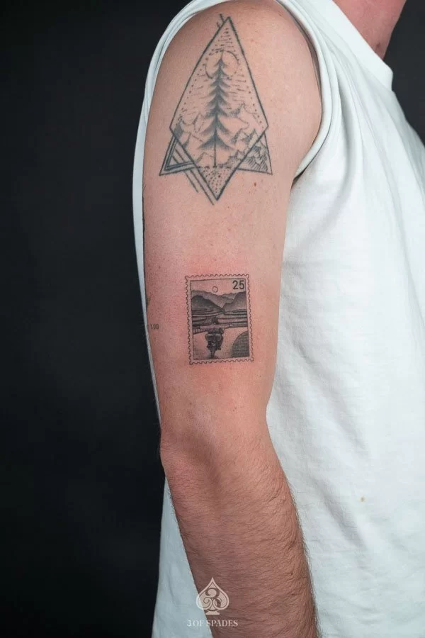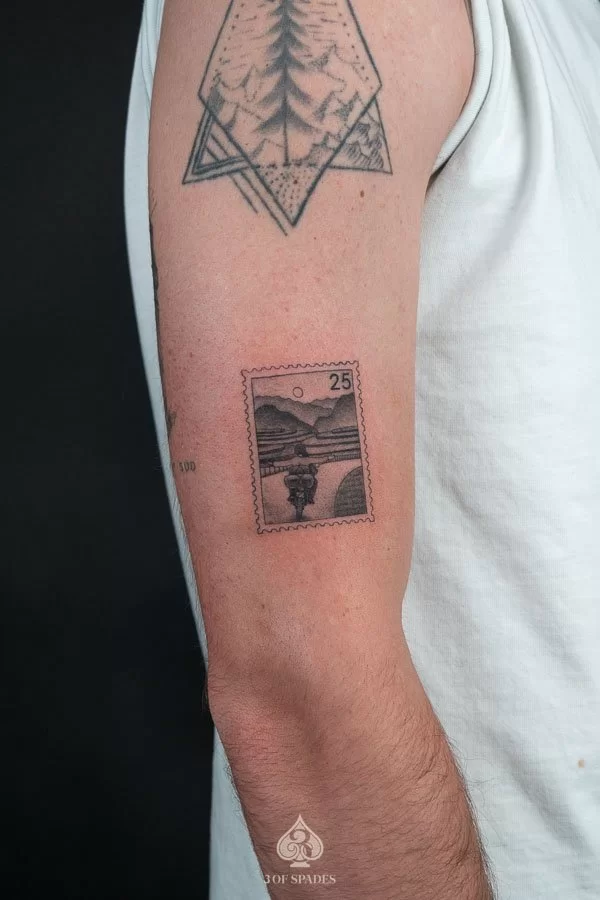 A Hagiang Bike Stamps tattoo holds cultural and spiritual meaning that transcends simple aesthetics. The specific meaning can vary based on the design elements, style, and personal intention of the wearer. Our artists at 3 Of Spades Tattoo Hanoi can help you incorporate meaningful details into your unique design.