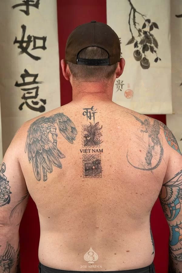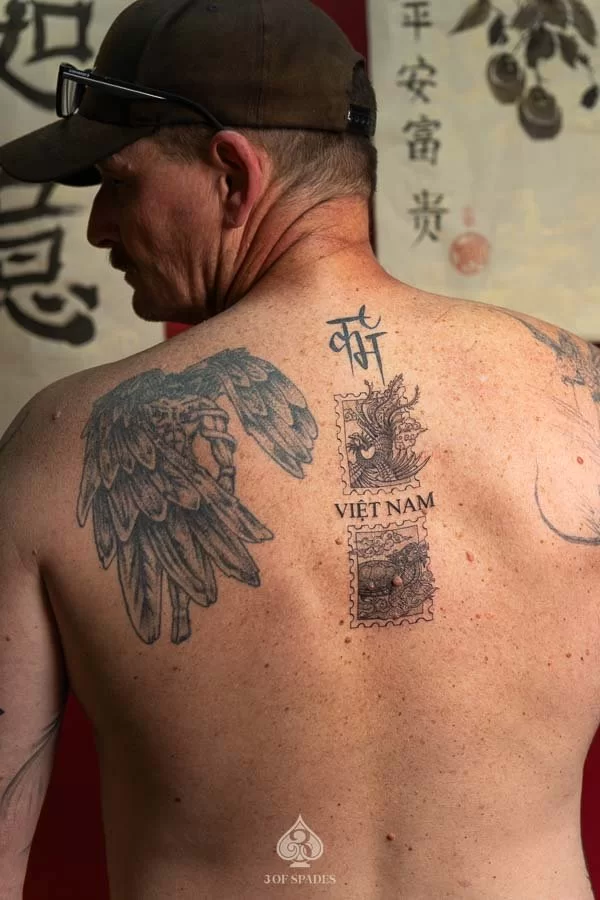 A Phoenix And Turtle Stamps tattoo carries deep personal significance for many who choose it. The specific meaning can vary based on the design elements, style, and personal intention of the wearer. Our artists at 3 Of Spades Tattoo Hanoi can help you incorporate meaningful details into your unique design.