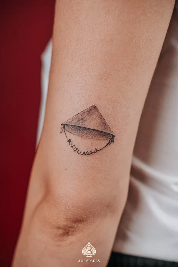 A Conical Hat tattoo holds cultural and spiritual meaning that transcends simple aesthetics. The specific meaning can vary based on the design elements, style, and personal intention of the wearer. Our artists at 3 Of Spades Tattoo Hanoi can help you incorporate meaningful details into your unique design.